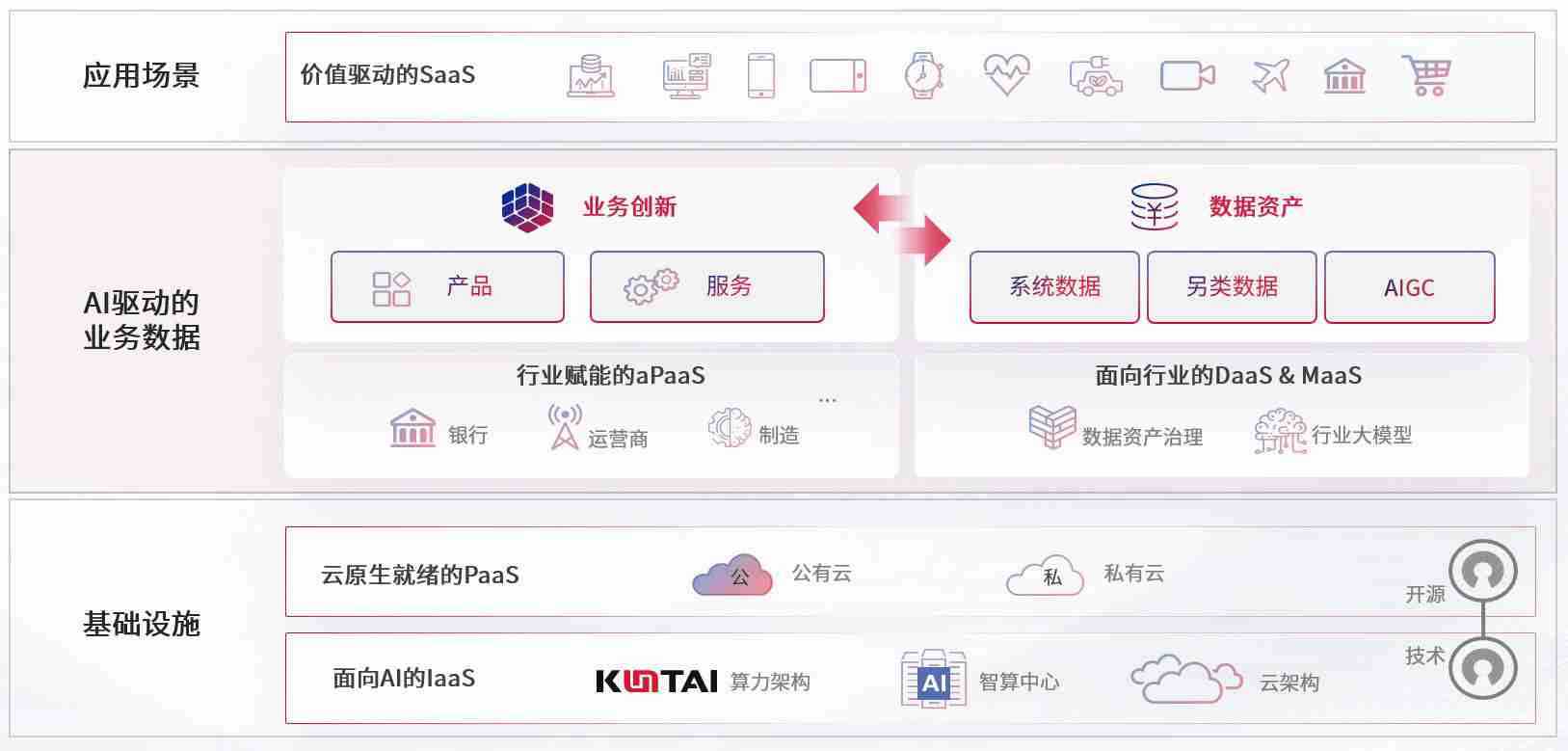 数字时代,,,围绕企业数字化转型的关键要素,,PA直营数码开创性的提出数云融合战略和技术体系框架,,,着力在云原生、、数字原生、、、AI原生和信创产业上架构产品和服务能力,,为处在不同数字化转型阶段的快消零售、、、、汽车、、、、金融、、医疗、、政企、、、教育、、运营商等行业客户提供泛在的敏捷IT能力和融合的数据驱动能力,,,构建跨界融合创新的数字业务场景和新业务模式,,,,助力企业级客户建立面向未来的核心能力和竞争优势,,,,全面推动社会的数字化、、智能化转型升级。。。。